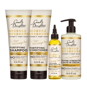 Paquete goddess strong de carol's daughter x coco gauff: kit de cuidado capilar con champú, acondicionador, tratamiento sin enjuague y aceite para el cuero cabelludo (4 artículos) - kit de cuidado capilar goddess strength: ser una diosa se trata de fortaleza. nuestra fundadora eligió ingredientes como aceite de ricino y semillas de comino negro para goddess strength, fortaleciendo el cabello débil, dejándolo fuerte y hermoso. nuestro set de cuidado capilar incluye 4 artículos. - incluye champú y acondicionador: nuestro champú fortificante sin sulfatos limpia a la vez que hidrata para un cabello más fuerte al instante, menos propenso a quebrarse y con un aspecto saludable. el acondicionador facilita el desenredado para reducir la rotura. - incluye acondicionador sin enjuague y aceite capilar: nuestro aceite para cabello y cuero cabelludo envuelve las hebras con hidratación para ayudar a proteger el cabello del quiebre y las puntas abiertas. el acondicionador sin enjuague fortalece el cabello entre lavados para que mantenga su longitud. - para cabello débil y propenso a quebrarse: los productos anti-quebradura fortalecen el cabello a medida que crece y se alarga. proporciona un cabello 15 veces más fuerte y un 94 % menos de quiebre en un solo uso con el sistema de champú, acondicionador, aceite y crema sin enjuague, en comparación con un champú sin acondicionador. - fundada por una mujer negra: lisa price fundó carol's daughter en su cocina de brooklyn en 1993. creó esta colección de productos capilares para ayudar al cabello natural a recuperar su equilibrio natural de hidratación, manejabilidad, brillo y suavidad.
