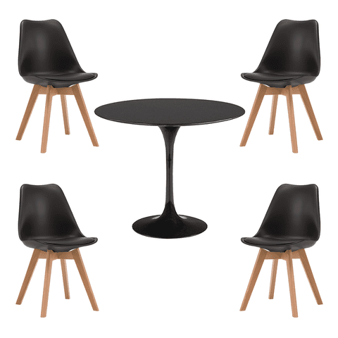 Klik Muebles - Comedor Tulip Negro 80Cm - 4 Sillas Tulip Negras | Lider Electrohogar