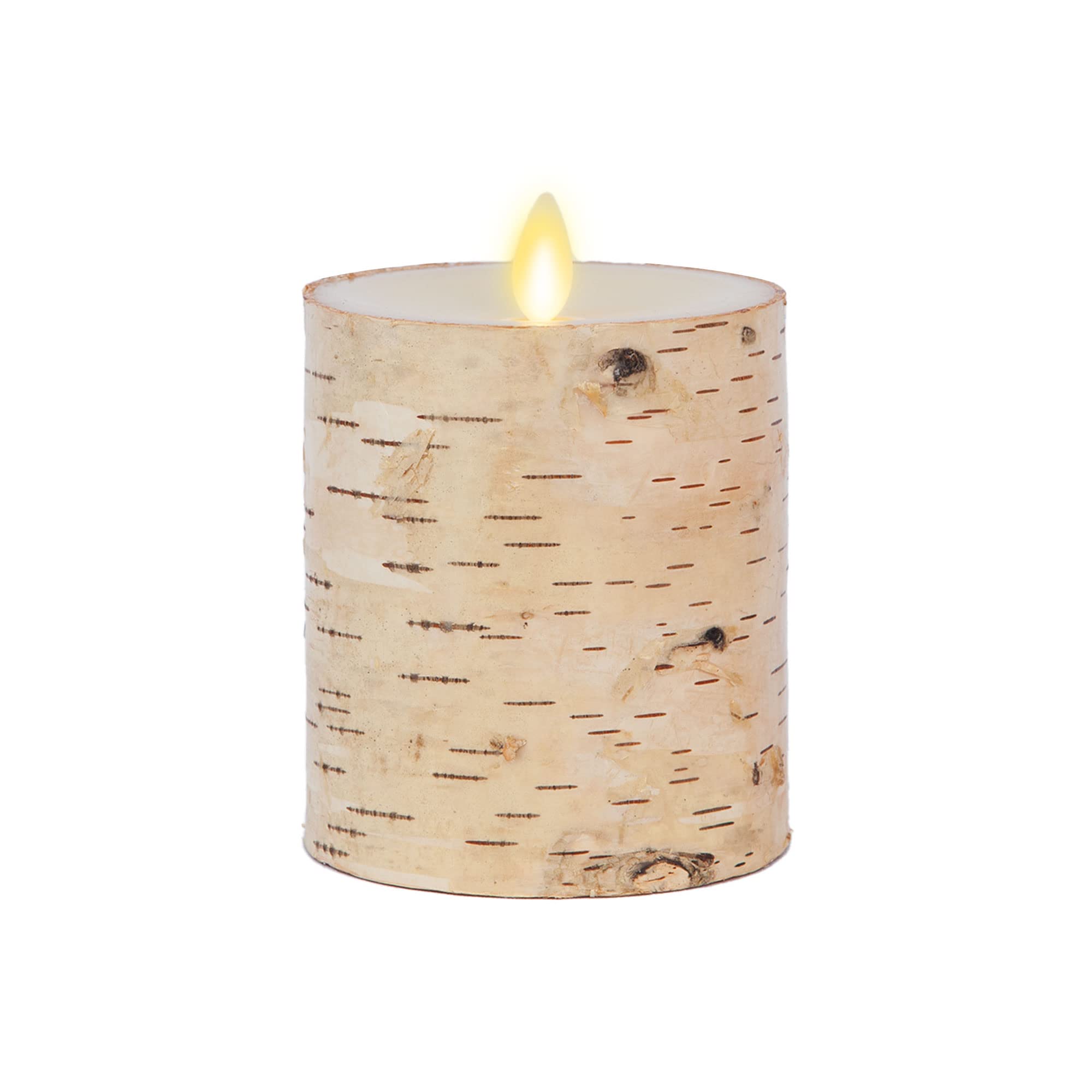 A primera vista, el pilar de vela sin llama de madera de abedul real parece un tronco de madera con un fuego parpadeando en la mecha. de hecho, hemos fabricado esta vela con cera de parafina y tecnología patentada de llama móvil para crear un aspecto natural sin el peligro de incendio. coloca esta vela rústica junto a plantas artificiales y decoración antigua. características del producto - tamaño: 3.5" x 4.5" - color: abedul - borde: empotrable superior - forma: pilar - fragancia: sin perfume - acabado: madera de abedul - material: cera de parafina - uso: interior - tecnología led: efecto de llama real - operación de encendido/apagado/temporizador: enciende la parte inferior de la vela - temporizador: 5 horas encendidas/19 horas apagadas - remoto listo: sí - control remoto incluido: no - características remotas: n/a - baterías necesarias: 2 aa (no incluidas) - duración de la batería: 200+ horas - envuelta con corteza de abedul real, esta vela sin llama es perfecta para llevar el exterior al interior. mide 3.5 x 4.5 pulgadas, es perfecto para todo el año, pero realmente se destaca durante las vacaciones de invierno, como navidad. este estilo de vela sin llama es capaz de ser operado por un control remoto (se vende por separado). se enciende y apaga mediante un interruptor en la parte inferior, que también activa el temporizador. - luminara las velas de pilar de llama móvil led sin llama están hechas con cera de parafina 100% pura, vertida a mano y cuidadosamente diseñada para parecerse a las velas tradicionales. son más seguros de usar que las velas tradicionales, ya que no se produce combustión real o consumo de cera. eso significa que no se libera hollín ni productos químicos en el aire, lo que los hace perfectos para su uso en interiores. son perfectos para hogares con niños pequeños curiosos y mascotas bulliciosas. - la luz es de un color blanco cálido encerrado en una llama amarilla diseñada para ser lo más realista posible. parpadea automáticamente cuando enciendes la vela, aumentando el realismo. la cera de parafina real es un color marfil tradicional. perfecto para uso durante todo el año, combinarán con casi cualquier estilo. úsalo por sí solo, o como parte de centros de mesa para vacaciones, decoraciones de boda o cuando quieras un poco de brillo para tu decoración. - las velas toman 2 pilas aa y proporcionan hasta 200 horas de tiempo de funcionamiento. las pilas no están incluidas. cuando se utiliza la función de temporizador, la vela se encenderá durante 5 horas y luego se apagará automáticamente durante 19 horas. con el cuidado adecuado, estas velas sin llama proporcionarán años de iluminación encantadora y segura. - las velas vienen empaquetadas en cajas resistentes para protegerlas durante el proceso de envío. también son fáciles de envolver sin tener que buscar solo la caja con forma correcta. son excelentes regalos para cualquier ocasión: navidad, cumpleaños, día de la madre, regalos de anfitriona de fiestas o incluso para ti mismo