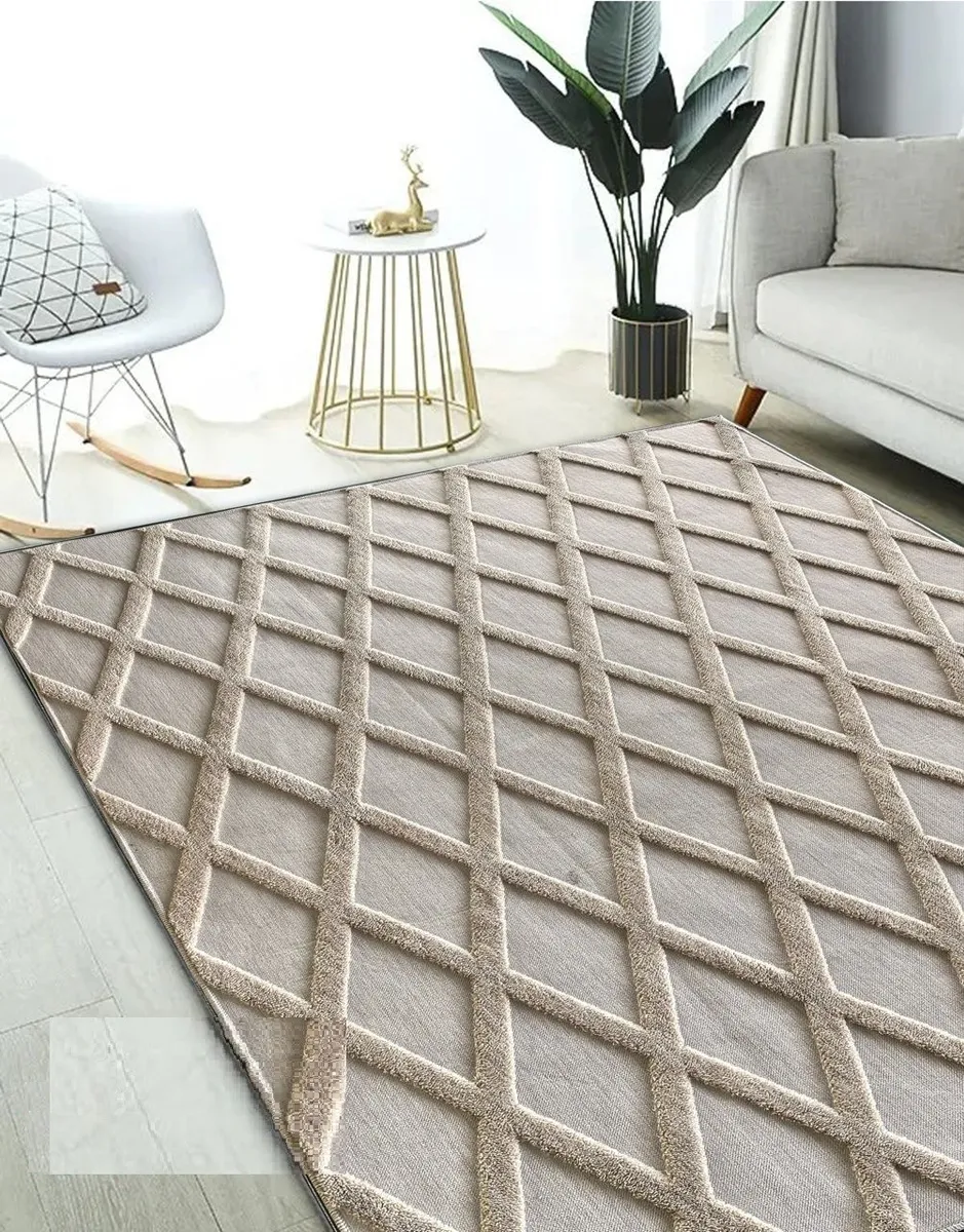 Casadeliacl - Alfombra Jacquard Algodón 160X200 Decorativa Moderna Wym 1.6 M 2 M Trenzado Beige | Lider Electrohogar