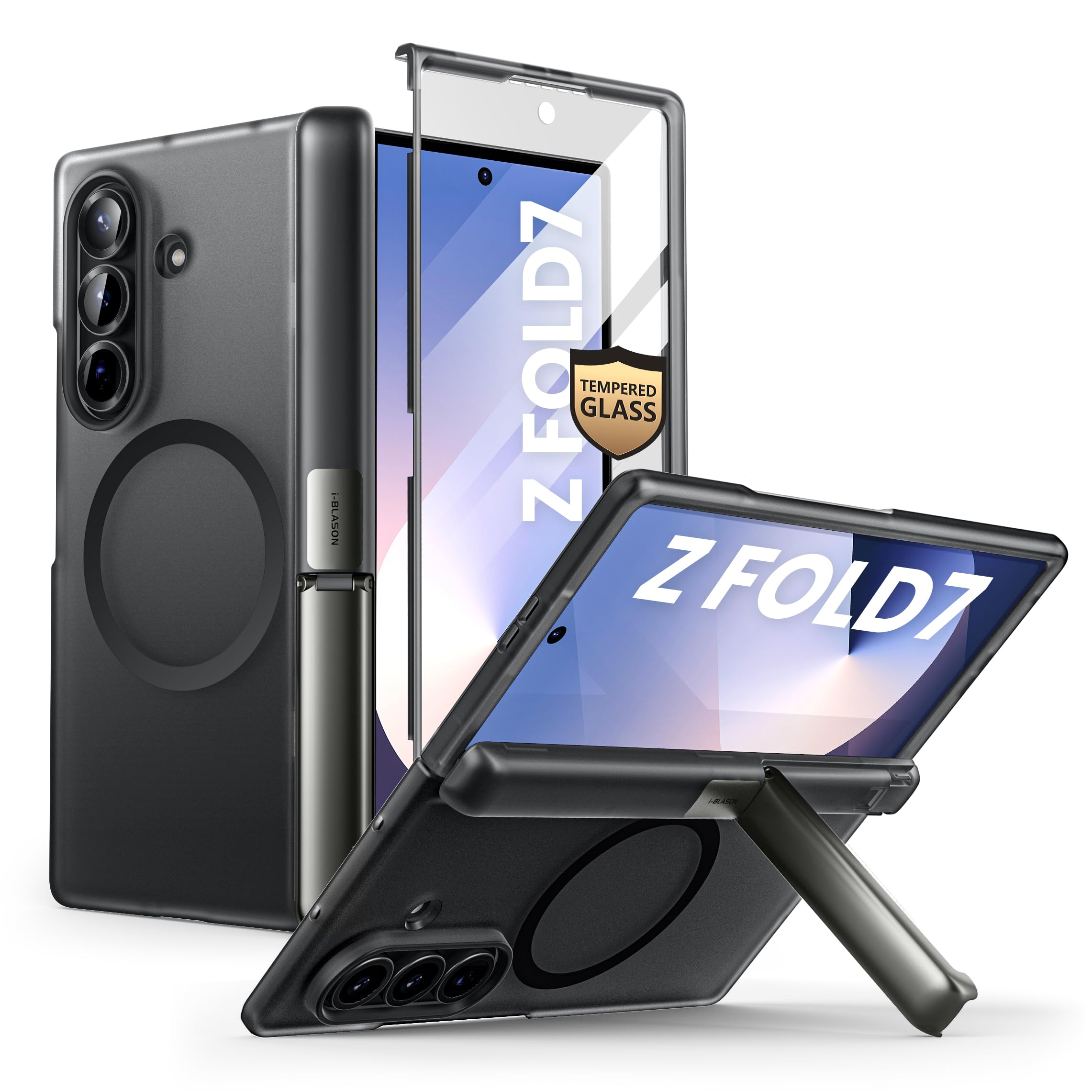 Funda i-blason para samsung galaxy z fold 7 [compatible con magsafe] [protector de pantalla de vidrio templado] [protección de bisagra y soporte] funda magnética protectora integral para z fold 7 (negro escarcha)