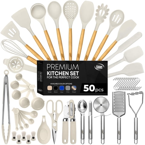 Juego De Utensilios De Cocina Kaluns, 50 Piezas De Silicona Con Mangos De Madera | Lider Electrohogar