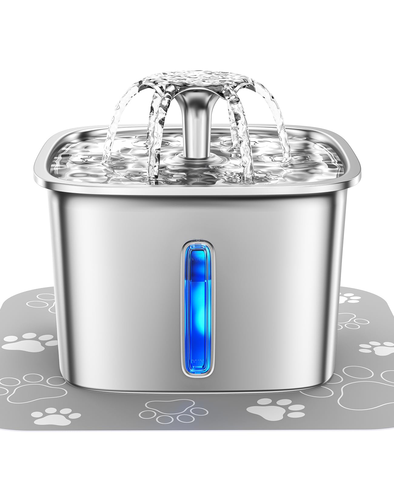 Fuente de agua para gatos de acero inoxidable ganadora del veken innovation award, dispensador automático de agua para mascotas de 95 oz/2.8 l con filtros de repuesto y alfombrilla de silicona para gatos, perros y varias mascotas (plateado), producto galardonado. veken se enorgullece de haber ganado en la categoría 2023 los premios pet innovation awards, un galardón que solo se otorga a los productos con mayor visión de futuro dentro de una industria de mascotas en rápida expansión. - acero inoxidable mejorado. opta por una versión más resistente e higiénica de nuestra fuente para mascotas más vendida. apto para lavavajillas y sin bpa, nuestro diseño de acero inoxidable ofrece el aspecto elegante y moderno que deseas con beneficios adicionales. - depósito de agua de gran capacidad. preocúpate menos de que tu peludo amigo se quede sin agua. nuestra fuente para mascotas cuenta con un tanque de reserva de agua de tamaño generoso para ayudarte a evitar rellenarlo con frecuencia y garantizar que tus mascotas estén sanas, hidratadas y felices. - método de filtración de 5 etapas. encerrado en una tela no tejida, nuestro sistema de filtración de varias etapas cuenta con carbón activado de cáscara de coco, una capa de algodón y una resina de intercambio iónico única, para que tus mascotas tengan un agua limpia, segura y con mejor sabor. - función de luz led. ilumina el lugar favorito para beber de tu mascota con nuestra función opcional de encendido/apagado. diseñada para una visibilidad asistida del nivel del agua y la ubicación de la fuente, nuestra suave luz es perfecta para evitar derrames y rellenarla fácilmente.