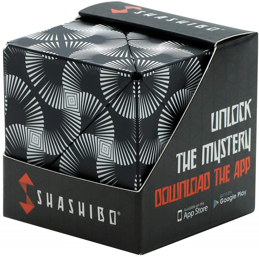 Shashibo shape shifting box - galardonado y patentado fidget cube w / 36 rare earth magnets - extraordinary 3d magic cube - magnet fidget toy transforms into over 70 shapes (black yamp; white)