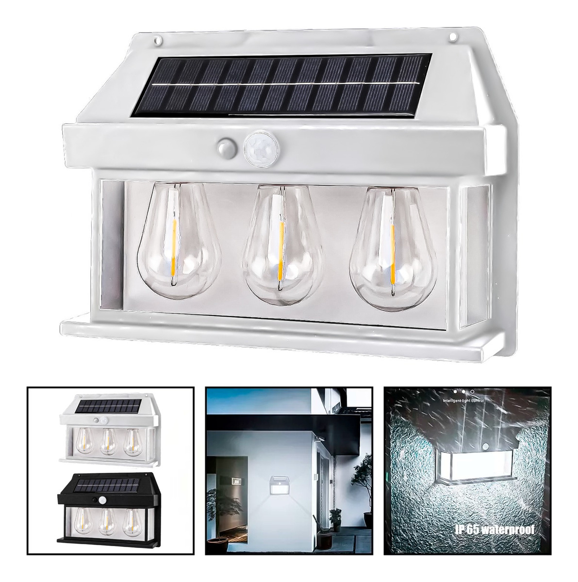 Genérico - 6 Farol Solar Aplique Pared 3 Ampolletas Led Sensor Luz Fría | Lider Electrohogar