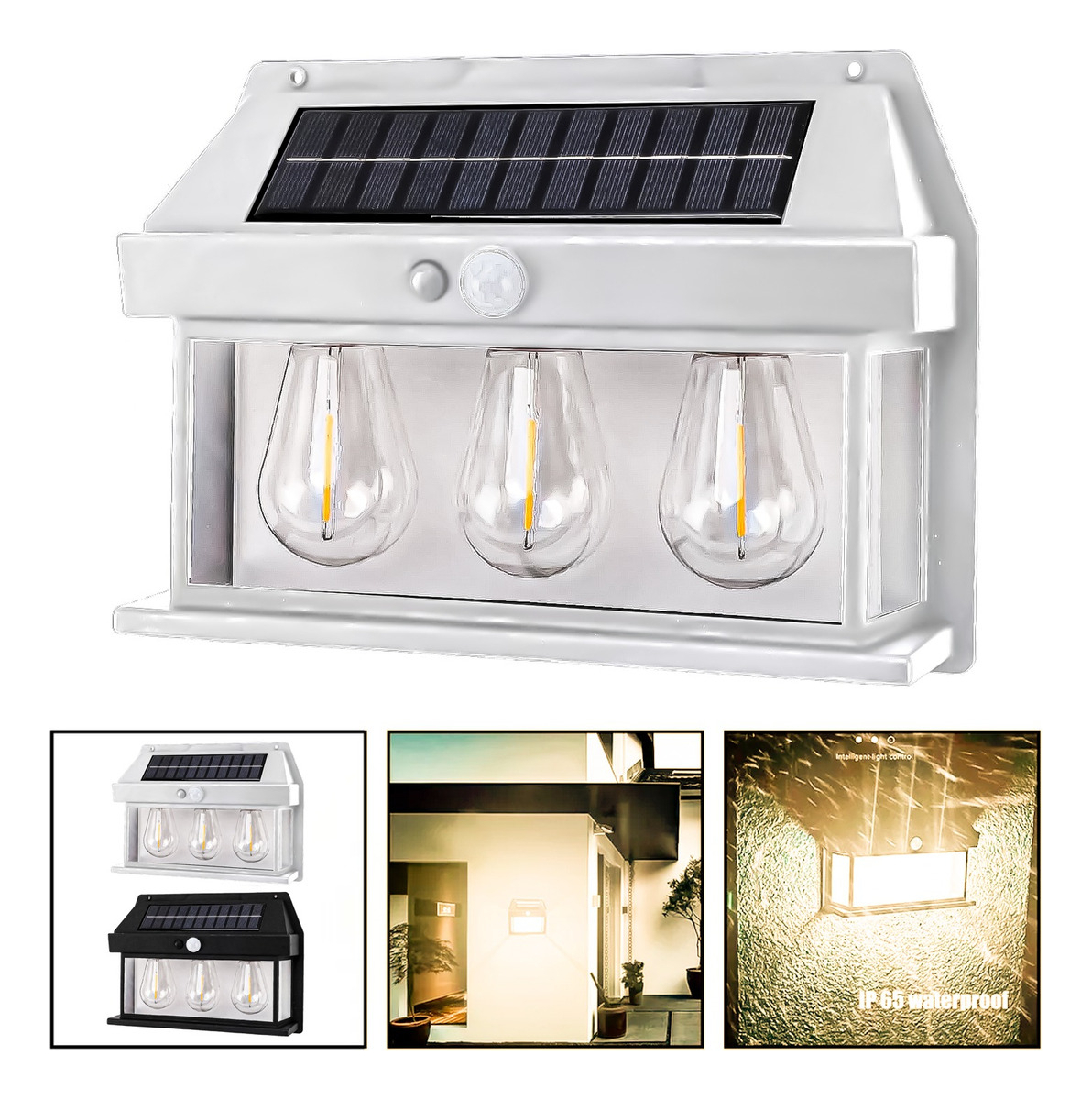 Genérico - 6 Farol Solar Aplique Pared 3 Ampolletas Led Sensor L Cálido | Lider Electrohogar