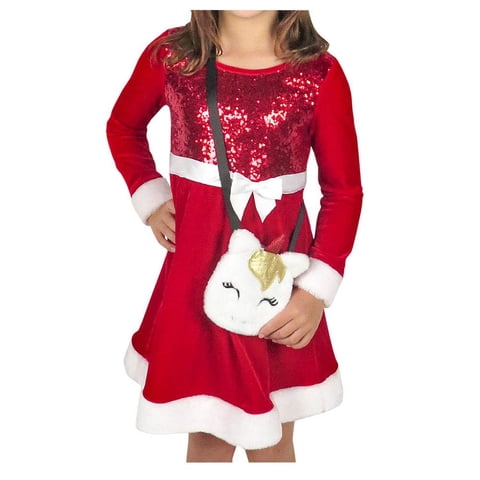 Pink & Violet - Vestido De Santa De Terciopelo Rosa Y Violeta Con Bolsa Para Niña 3T | Lider Electrohogar