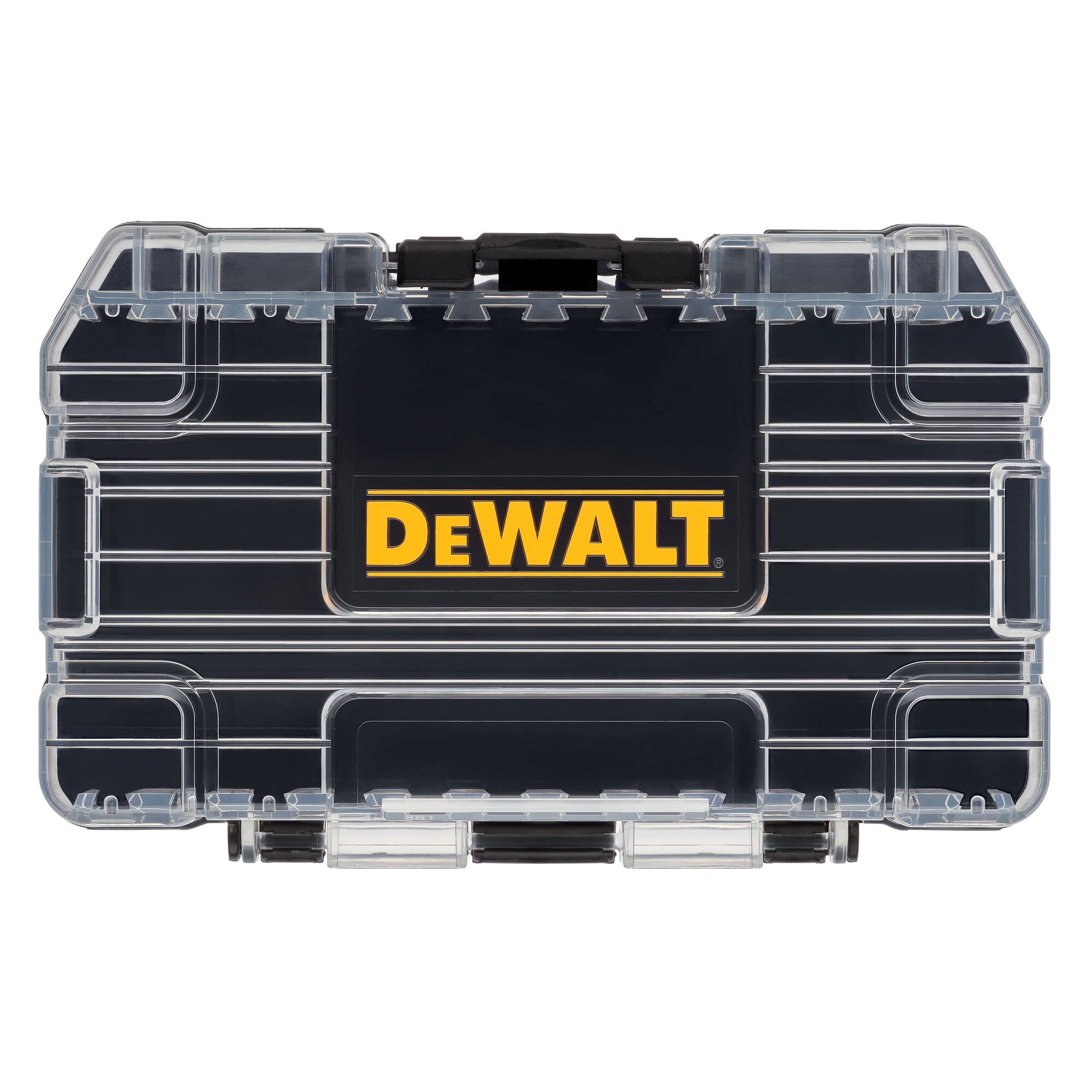 Dewalt toughcase - caja de herramientas, para piezas pequeñas, organizador de 1 compartimento, cierre de clip para cierre seguro (dwastcaseblk) - sistema de almacenamiento de accesorios conectable para optimizar el espacio de almacenamiento - la tapa transparente te permite ver fácilmente el contenido de un vistazo - cierre de clip para un cierre seguro