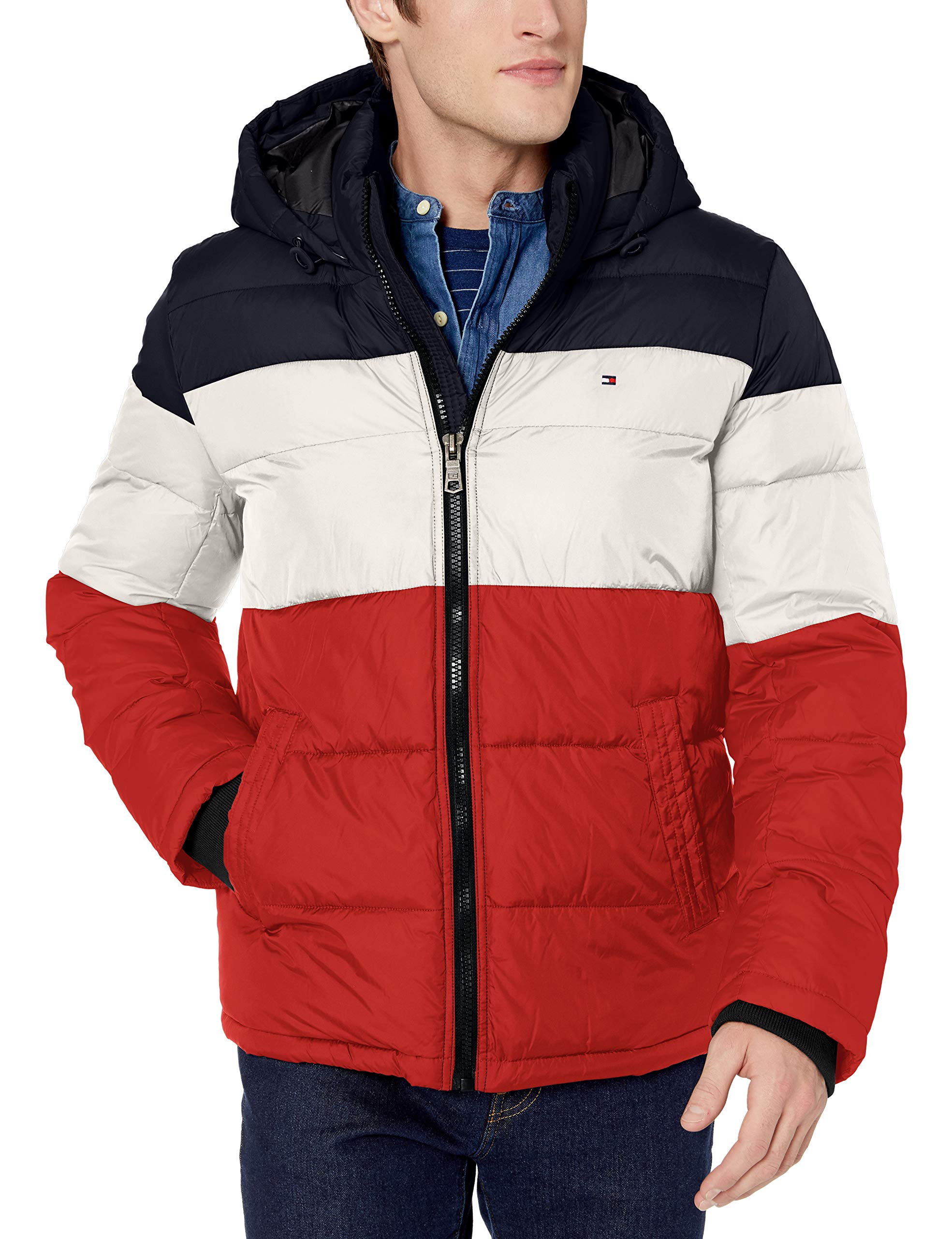 Chaqueta Acolchada Tommy Hilfiger Con Capucha Para Hombre Midnight/Ice/Orange | Lider Electrohogar