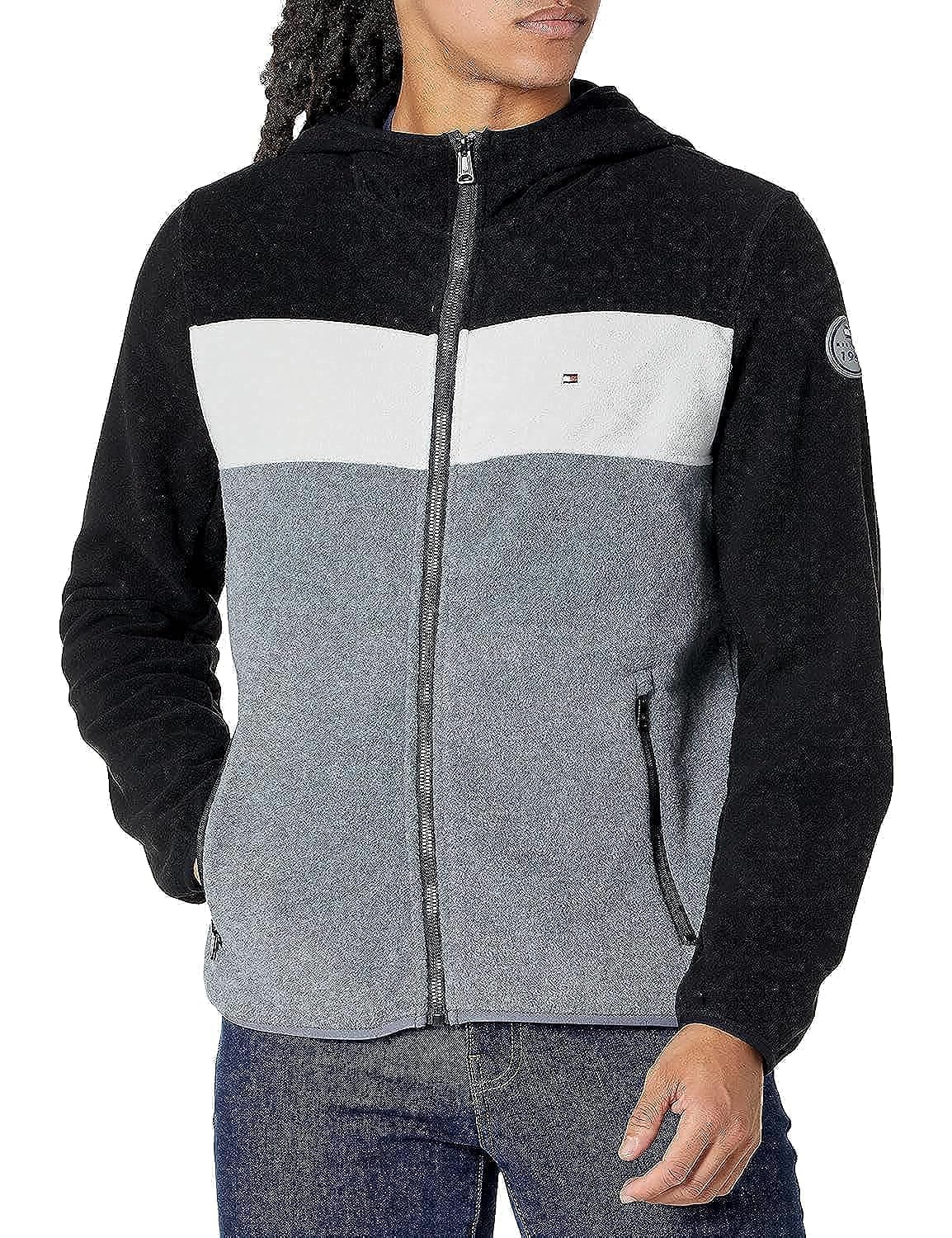 Tommy hilfiger - chaqueta de vellón con capucha para hombre, negro/hielo/gris claro, xxl - chaqueta de vellón, capucha adjunta, dos bolsillos inferiores con cremallera. - cierre frontal con cremallera, bandas elásticas en los puños, la cintura y la capucha para mayor comodidad; bandera bordada con la firma de tommy en el pecho.