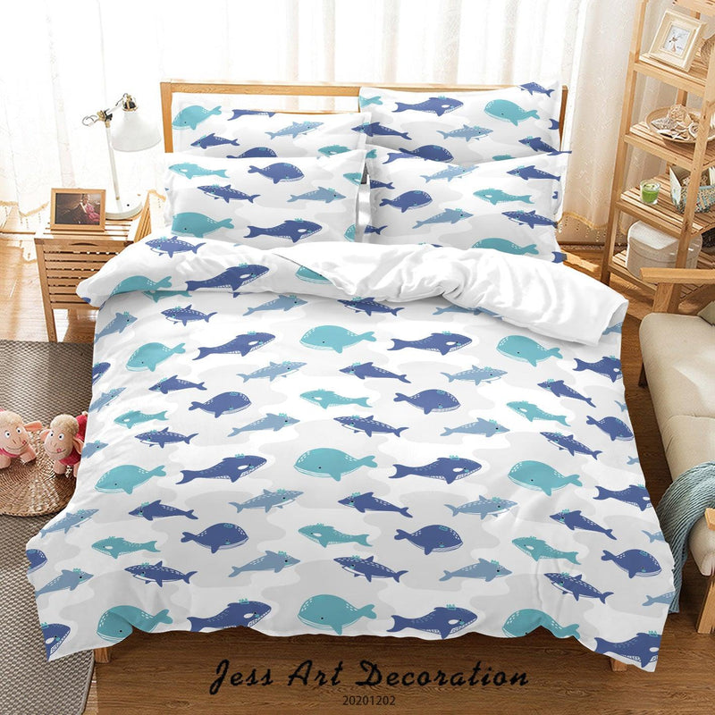 Milsleep - 3D Cartoon Azul Océano Tiburón Ballena Pez Patrón Funda De Edredón Set Ropa De Cama Set | Lider Electrohogar