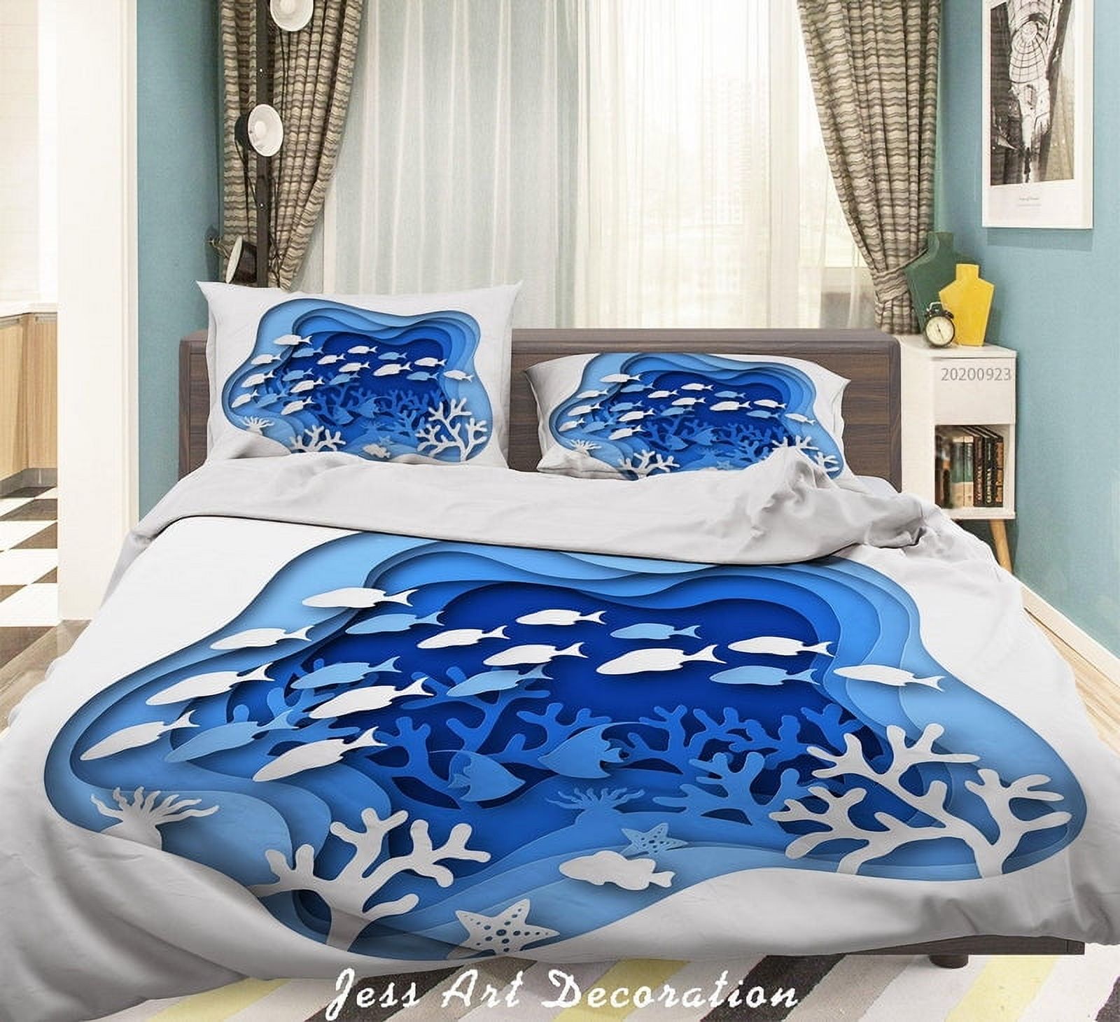 Milsleep - 3D Dibujado A Mano Fish Pattern Quilt Cover Set Ropa De Cama Set Funda Nórdica Fundas De Almohada | Lider Electrohogar
