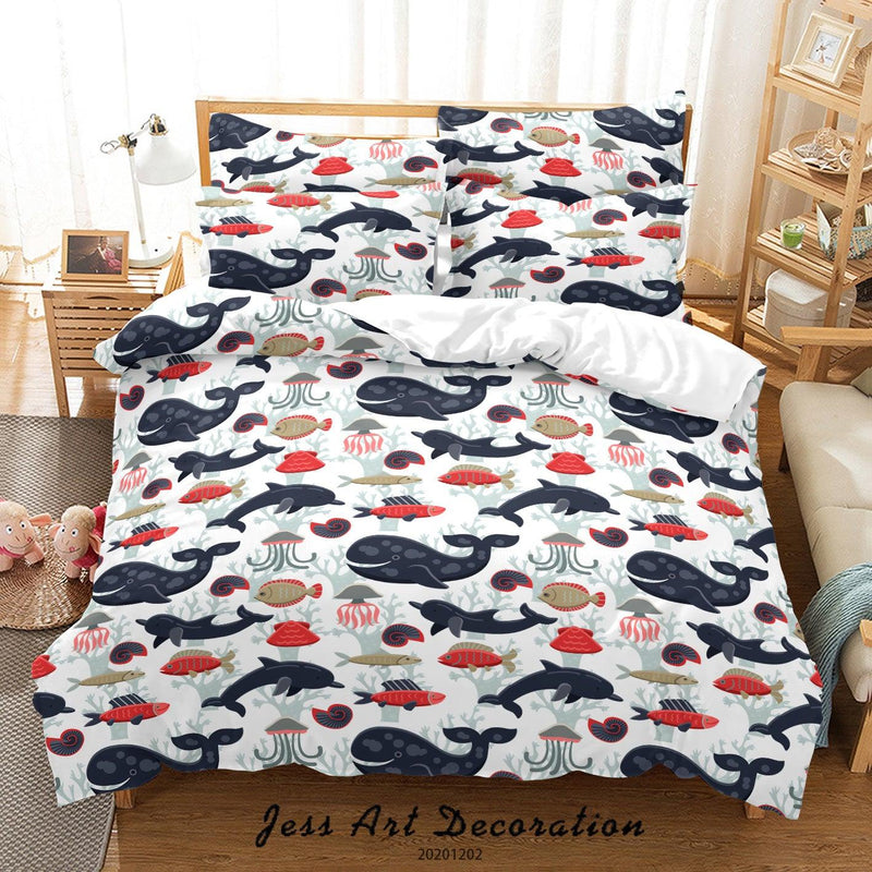 Milsleep - 3D Cartoon Dibujado A Mano Colorido Océano Tiburón Ballena Cangrejo Pez Funda De Edredón Set