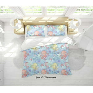 Milsleep - 3D Cartoon Pulpo Caballito De Mar Patrón Funda De Edredón Set Ropa De Cama Set Funda Nórdica | Lider Electrohogar