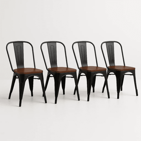Klik Muebles - Pack De 4 Sillas Tolix Con Asiento De Madera Oscura Walnut - Negras | Lider Electrohogar