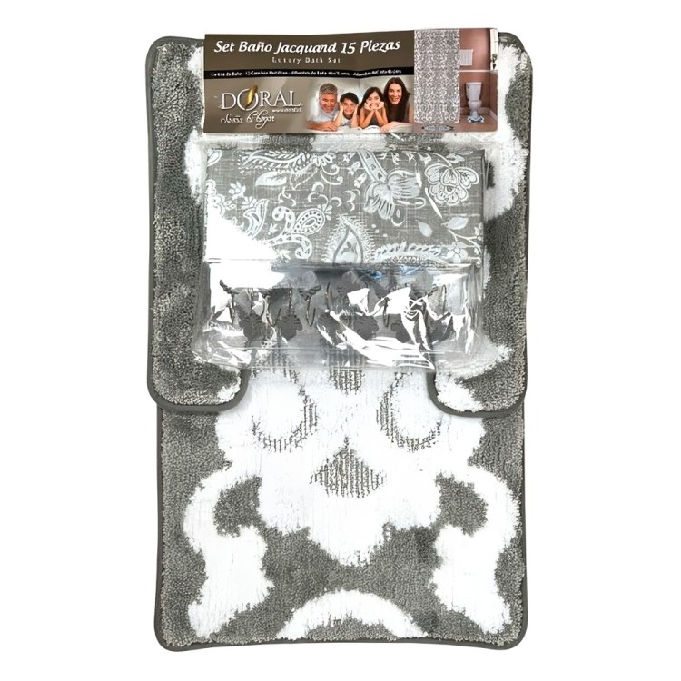 Set De Baño 15Pcs Jacquard / Flores Gris Blanco – Doral | Lider Electrohogar