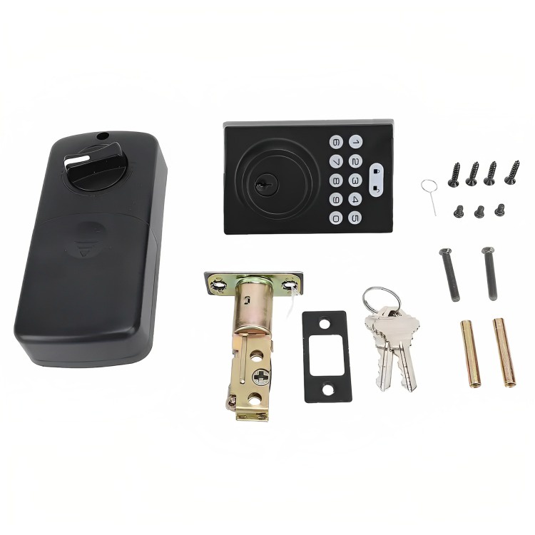 Cerradura inteligente para puerta de entrada con teclado importante: la alimentación de energía del producto es con 4 pilas aa (las cuales no incluye la cerradura) descripción del articulo: - desbloqueo 2 en 1: esta cerradura admite el desbloqueo mediante teclas y contraseñas. proporciona 40 códigos de acceso para los miembros de la familia, incluyendo 10 código temporal para una entrada única de invitados. - código de una sola vez: permite establecer un pin único para el acceso a la puerta, el cual se elimina automáticamente después de su uso. cabe destacar que el código de una sola vez se invalida en el modo de vacaciones. - bloqueo automático y de un solo toque: activa el bloqueo automático en los ajustes, con un retraso personalizable de 5 a 30 segundos. se puede bloquear fácilmente con un solo toque. - segura y duradera: esta cerradura para puerta delantera está fabricada con una estructura de aleación de aluminio sólida, indicador de batería baja y una interfaz de alimentación de emergencia mediante usb-c. - fácil de instalar: solo se necesita un destornillador para su instalación, y se puede ajustar fácilmente a la dirección de desbloqueo preferida. tiene una distancia central ajustable de 2-3/8" o 2-3/4". es importante tener en cuenta que esta cerradura inteligente está diseñada para agujeros de puerta de 2-1/8 pulgadas y no es compatible con orificios de 1.496 pulgadas.