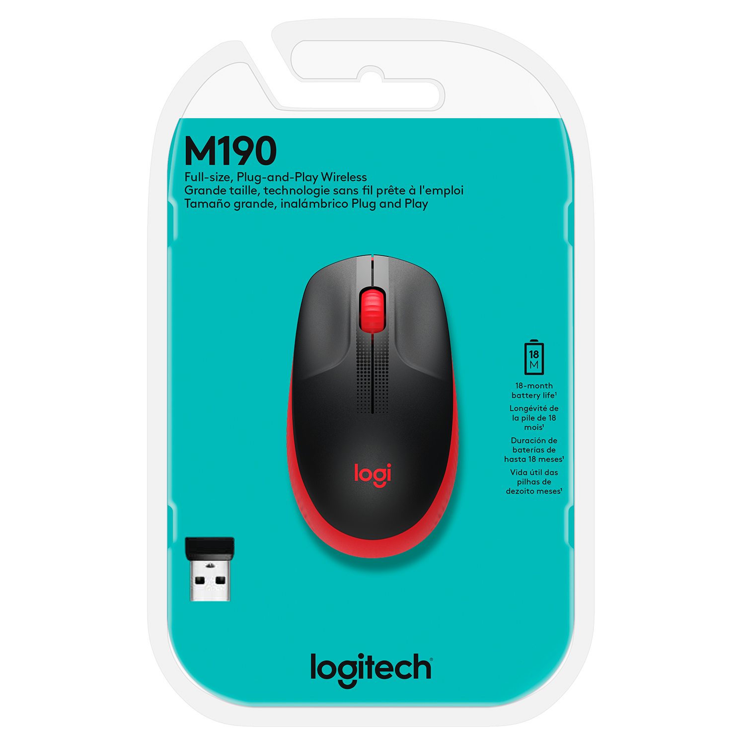 Mouse Logitech M190 Full-Size Wireless Rojo