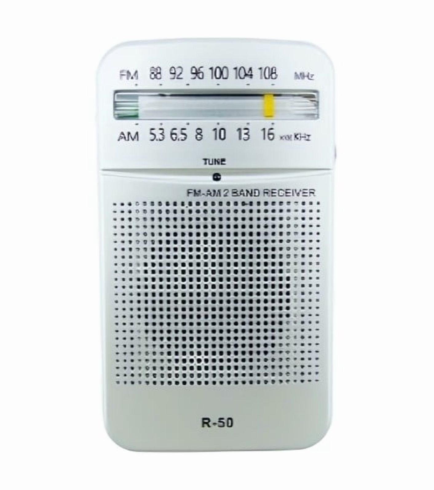 Radio am/fm 2 bandas modelo r-50 a pilas radio am/fm 2 bandas, modelo r-50, funciona a pilas (no incluidas), disponible en negro y plateado, compacto y práctico para escuchar tus emisoras favoritas. producto en caja. • especificaciones producto radio 2 bandas. modelo r-50 medidas 11.6 cm x 5.7 cm x 2.9 cm material pvc peso 150 g color 2 envase caja cantidad set x 1