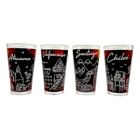 Set 4 Vasos Ciudades De Chile Collection Glasso