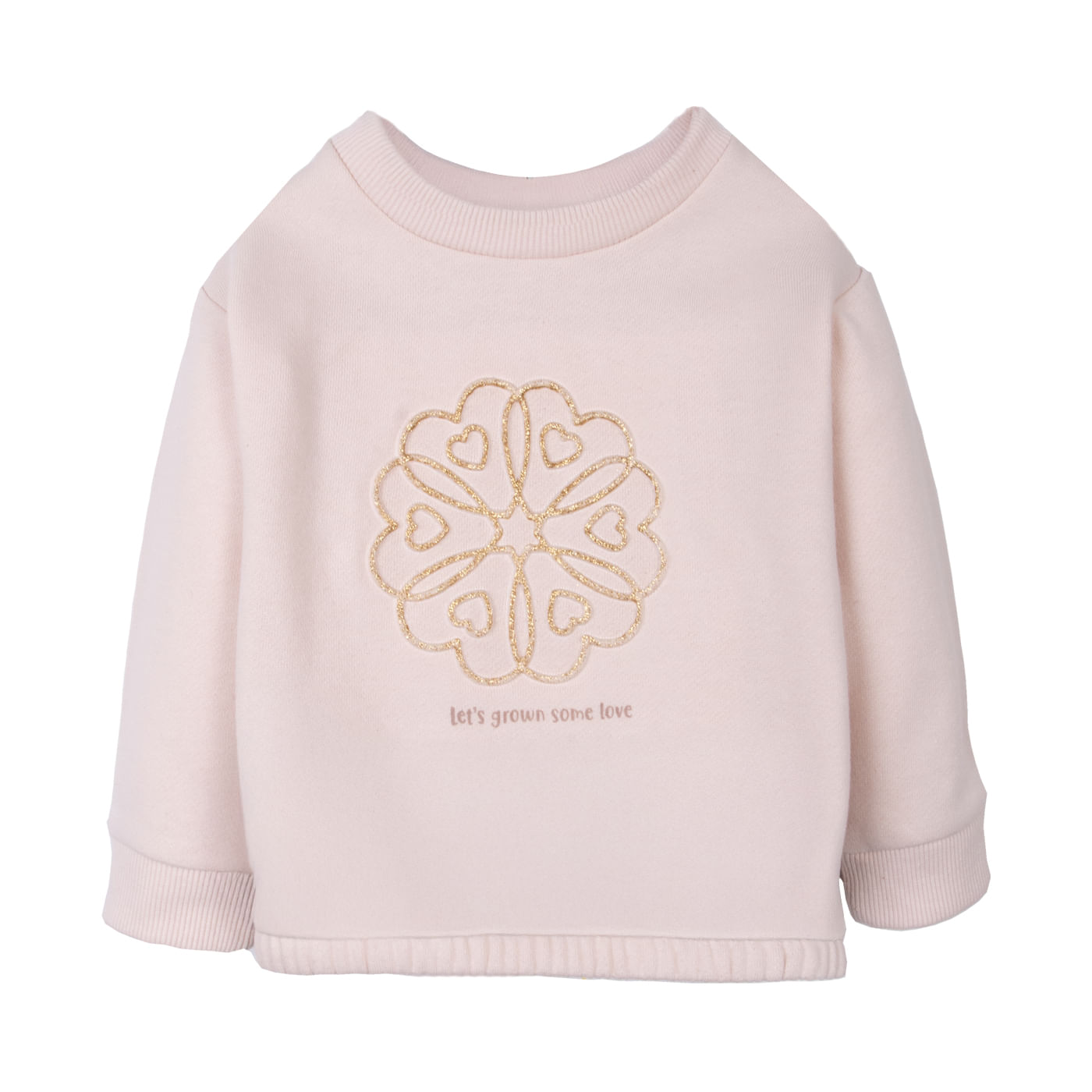Polerón cerrado para bebe niña con estampado frontal con aplicación de fantasía.