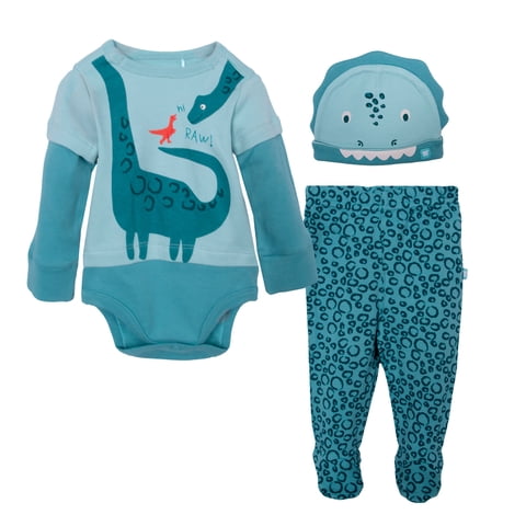 Pillin - Set 3Piezas Recién Nacido Niño Algodón Orgánico Dinosaurio | Lider Electrohogar