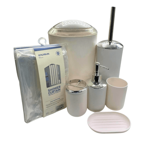 Genérico - Juego Accesorios Set De Baño 6 Piezas Cepillo Wc Blanco + Cortina De Obsequio | Lider Electrohogar