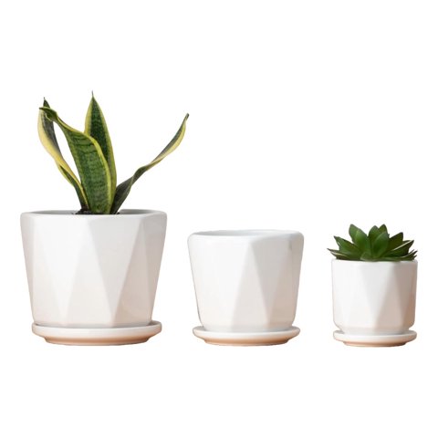 Juego De 5 Macetas De Plástico Blancas Con Drenaje Utopia Home