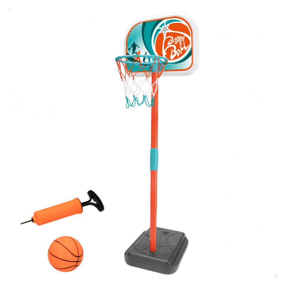 Aro de basketball pedestal con pelota e inflador