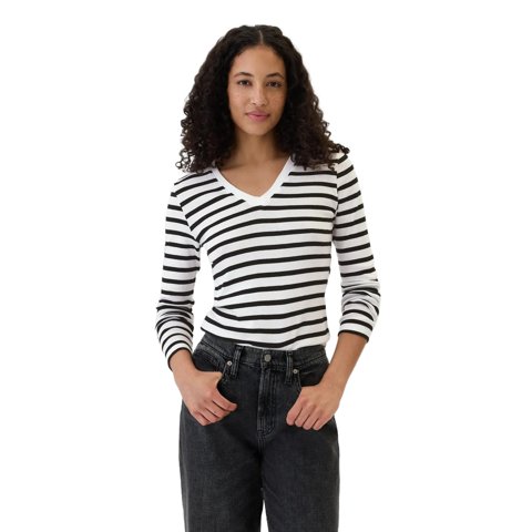 Camisa Gap Manga Larga Con Cuello En V Y Rayas Blancas M