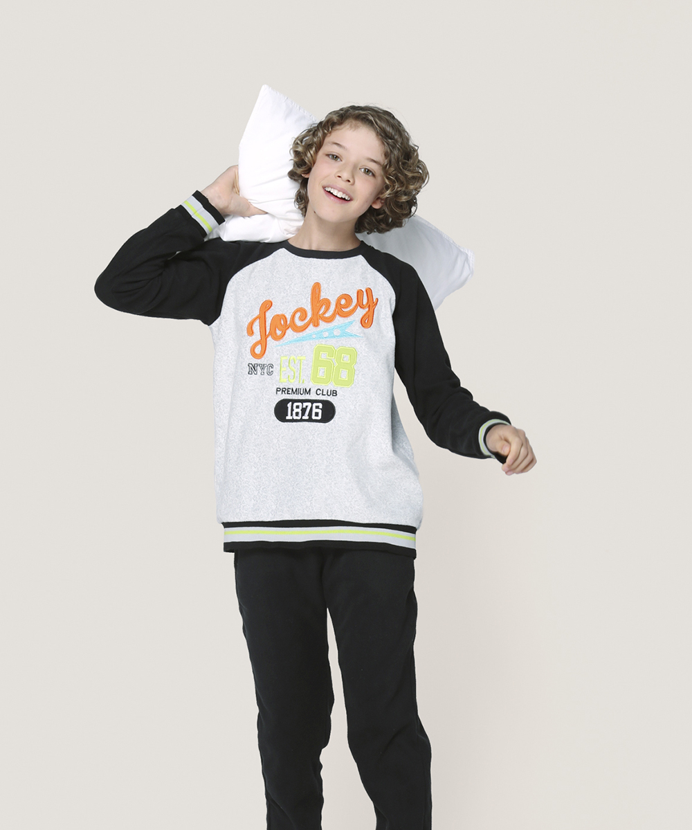 Pijama micropolar para niños con diseño urbano y comodidad única. polera estampada y pantalón jogger ajustable. en lynette chile