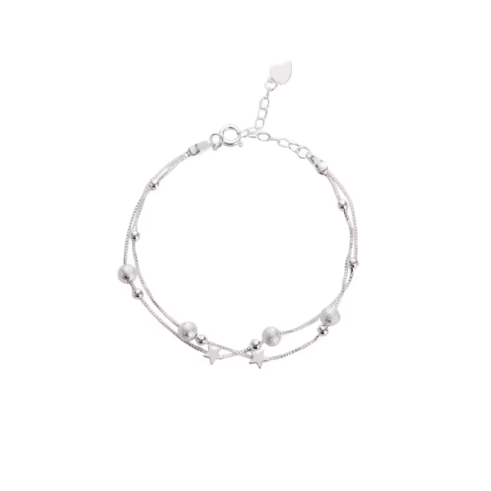 Pulsera plateada estrella doble cadena