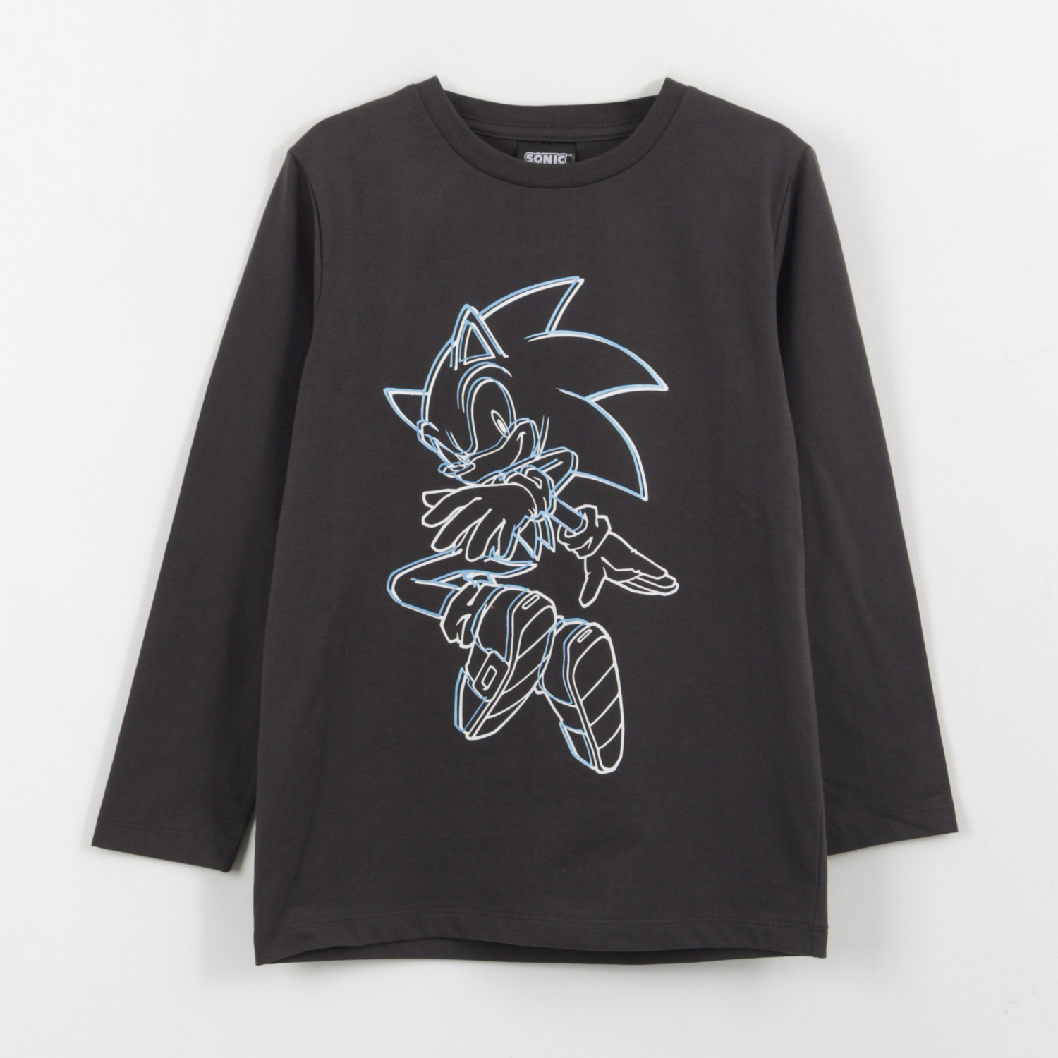 Polera manga larga niño diseño lineal gris sonic