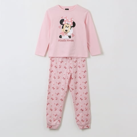 Pijama Manga Larga Niña Cinta Minnie Mouse Rosado Disney