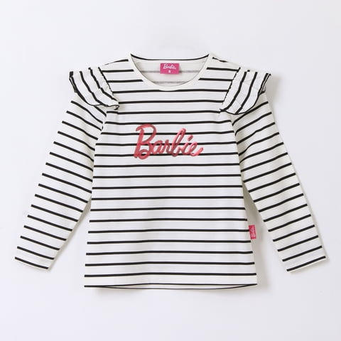 Polera Manga Larga Niña Rayas Logo Blanco Barbie | Lider Electrohogar