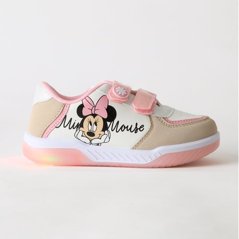 Zapatilla Luces Niña Velcro Moño Minnie Rosado Disney