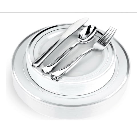 Badim - Platos Desechables Elegantes Fiesta Plateados 10 Personas 50 Pcs | Lider Electrohogar