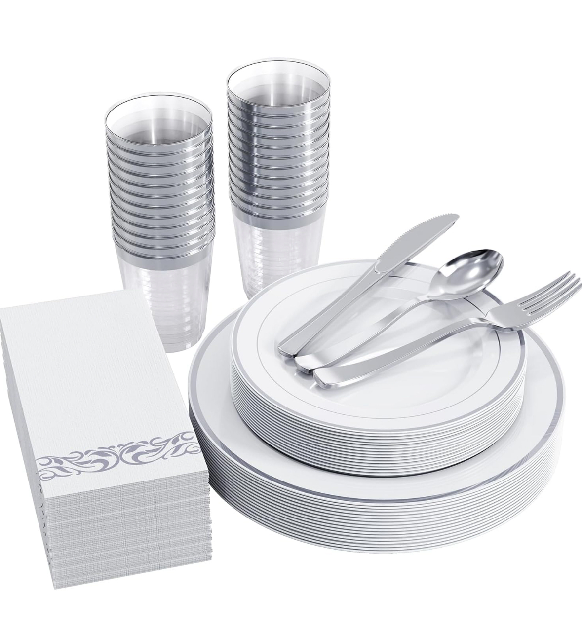 Badim - Platos Desechables Elegantes Fiesta 10 Personas 70 Pcs Silver | Lider Electrohogar