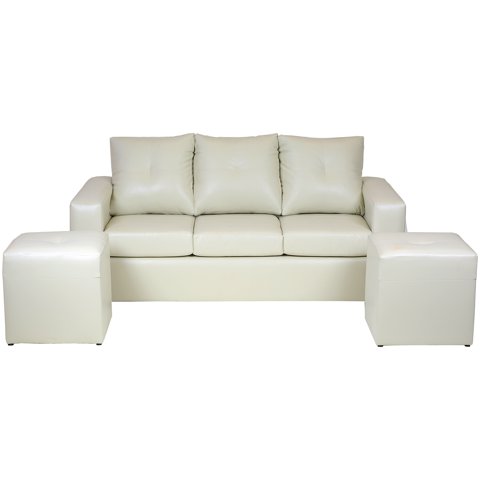 Muebles América - Living Emilia Sofá 3 Cuerpos + 2 Pouf Cuero Auris Beige