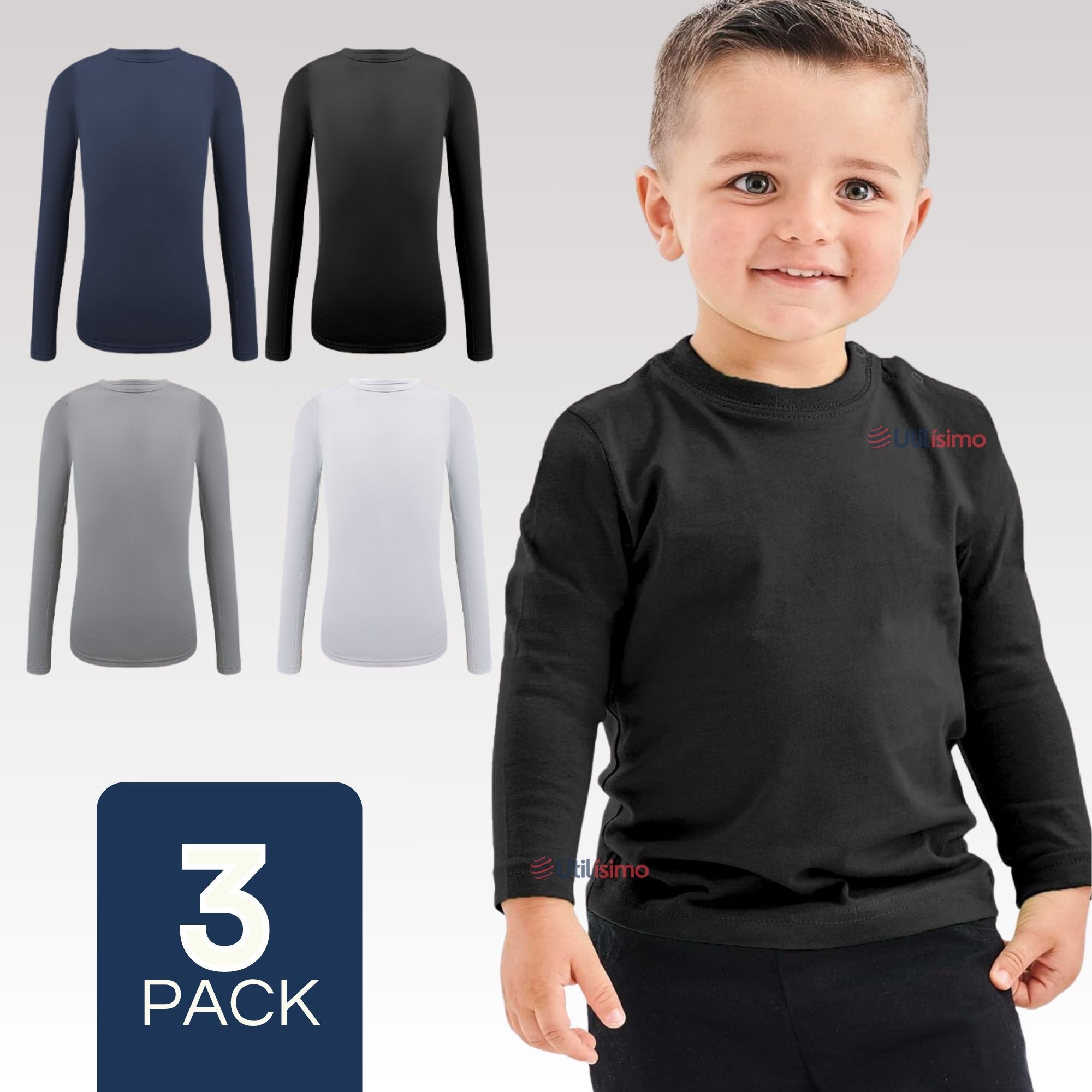 Mas Clothing - Pack 3 Camisetas Bambú Primera Capa Polera Niño Cuello Redondo Surtido | Lider Electrohogar