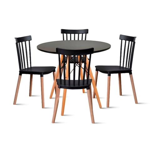 Klik Muebles - Comedor Mesa Redonda Negra 80Cm + 4 Sillas Windsor Negras | Lider Electrohogar