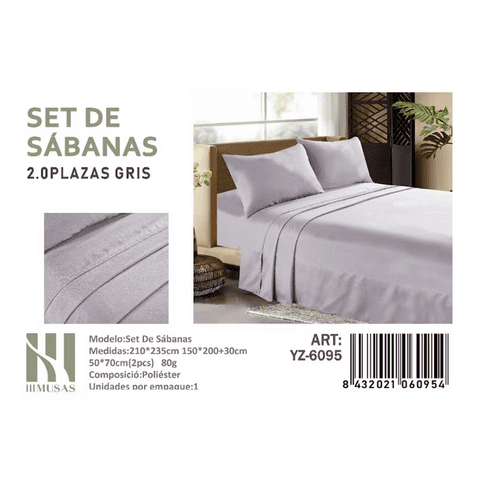 Mundo Shopping - Set De Sabanas 2.0 Plazas 150 Hilos Color Gris 2 Funda De Almohada