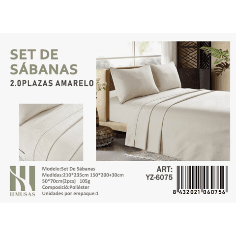 Mundo Shopping - Set De Sabanas 2 Plazas Color Amarelo 200 Hilos + 2 Funda De Almohada