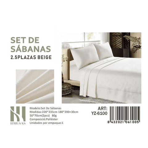 Mundo Shopping - Set De Sabanas King Color Beige Lago 150 Hilos + 2 Funda De Almohada