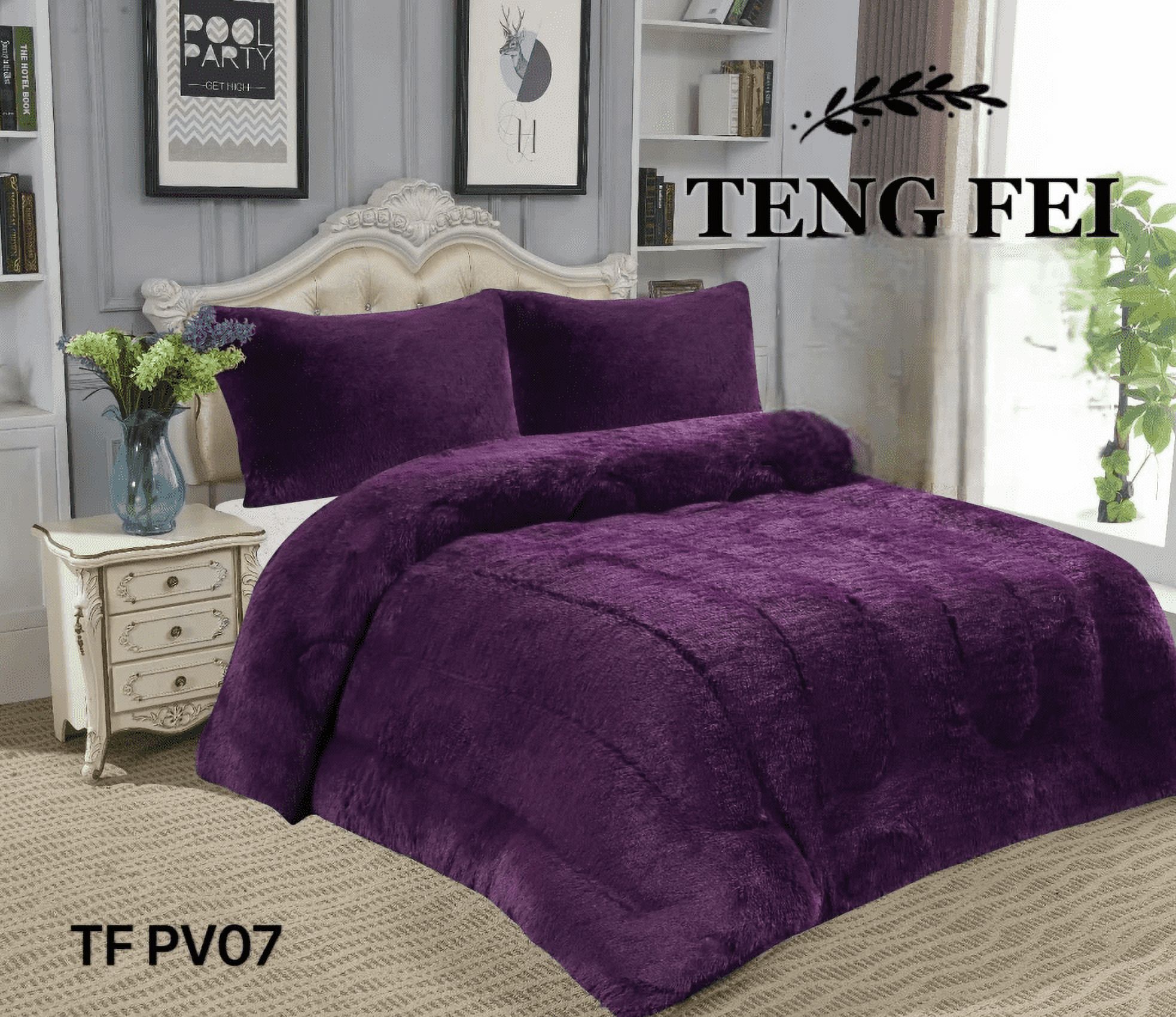 Color morado - cobertor peludo - tamaño king