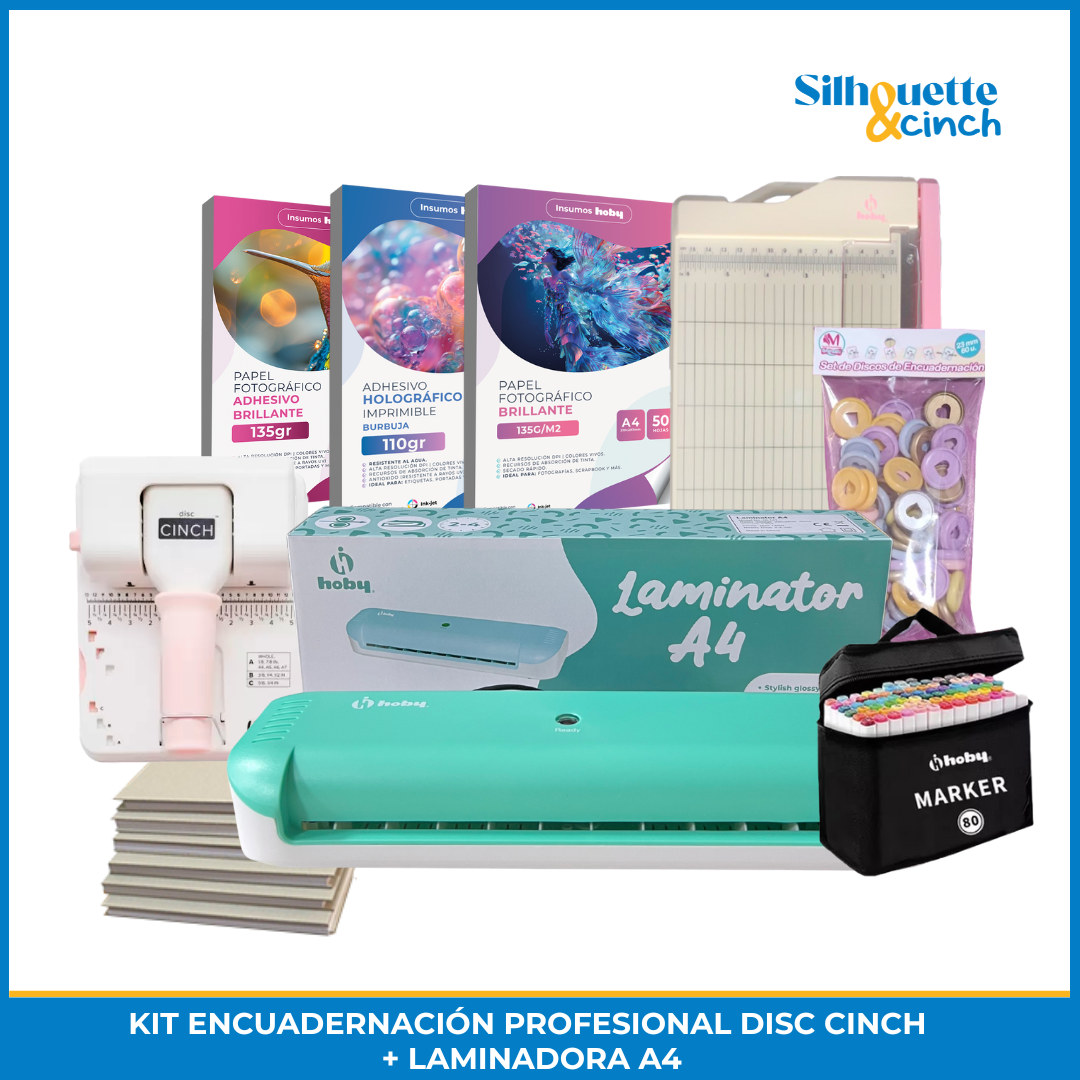 Hobypress - Kit Profesional Encuadernación Disc Cinch + Laminadora Menta A4 | Lider Electrohogar