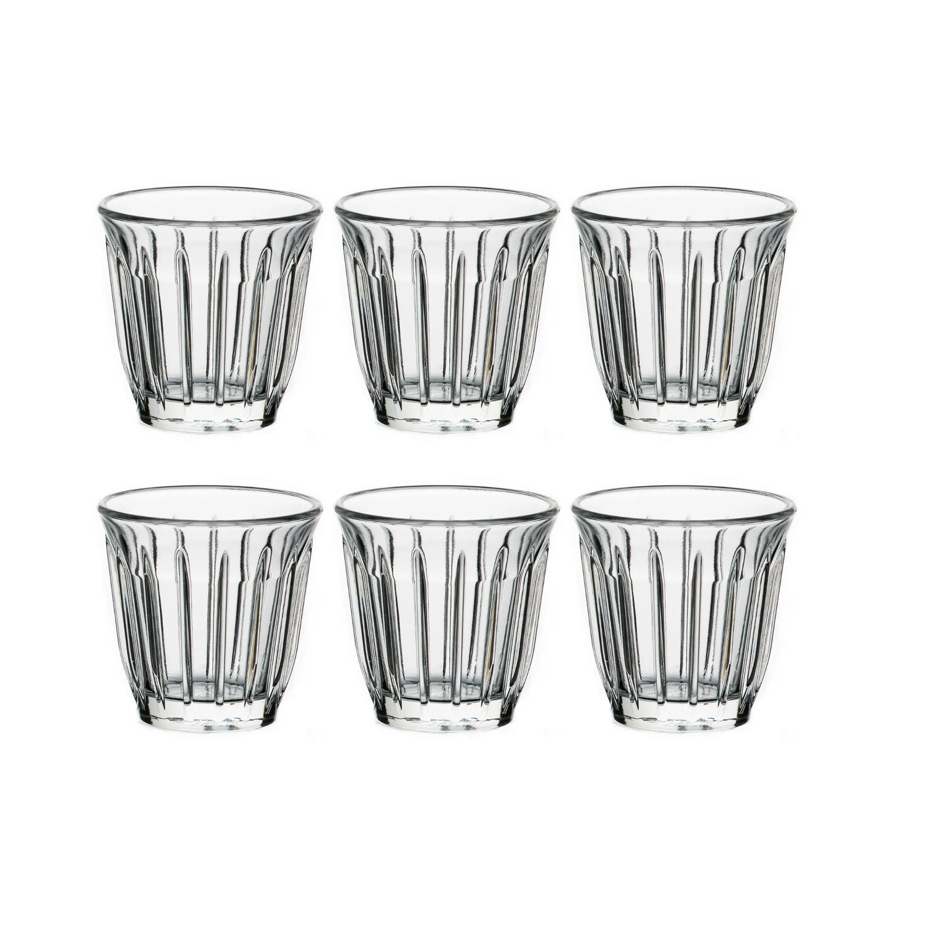 Esta elegante taza de expresso estriada es una nueva versión del clásico vaso francés para todo uso.