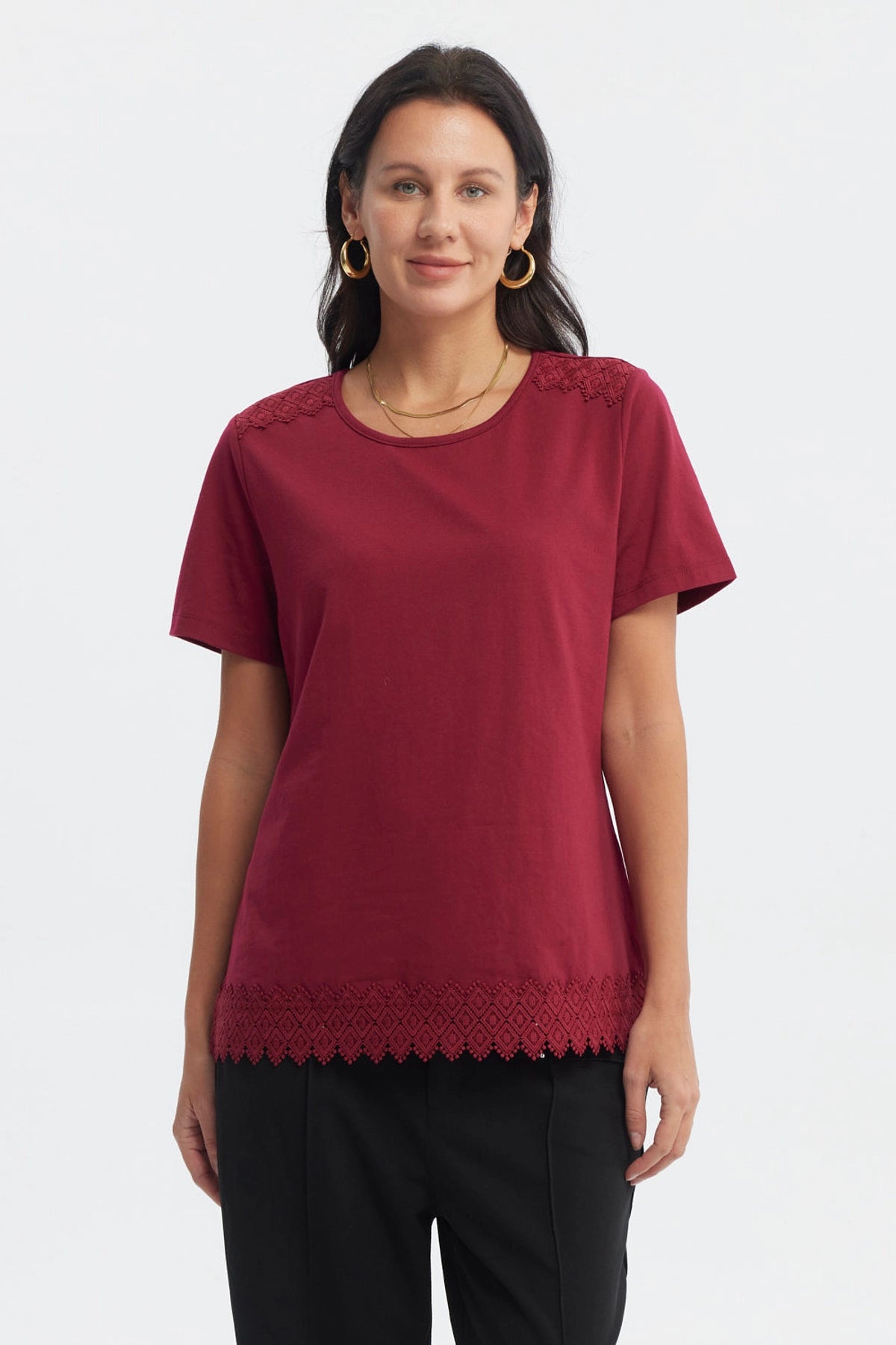 Fashionspark - Polera Mujer Detalle Cuello Escote Burdeo