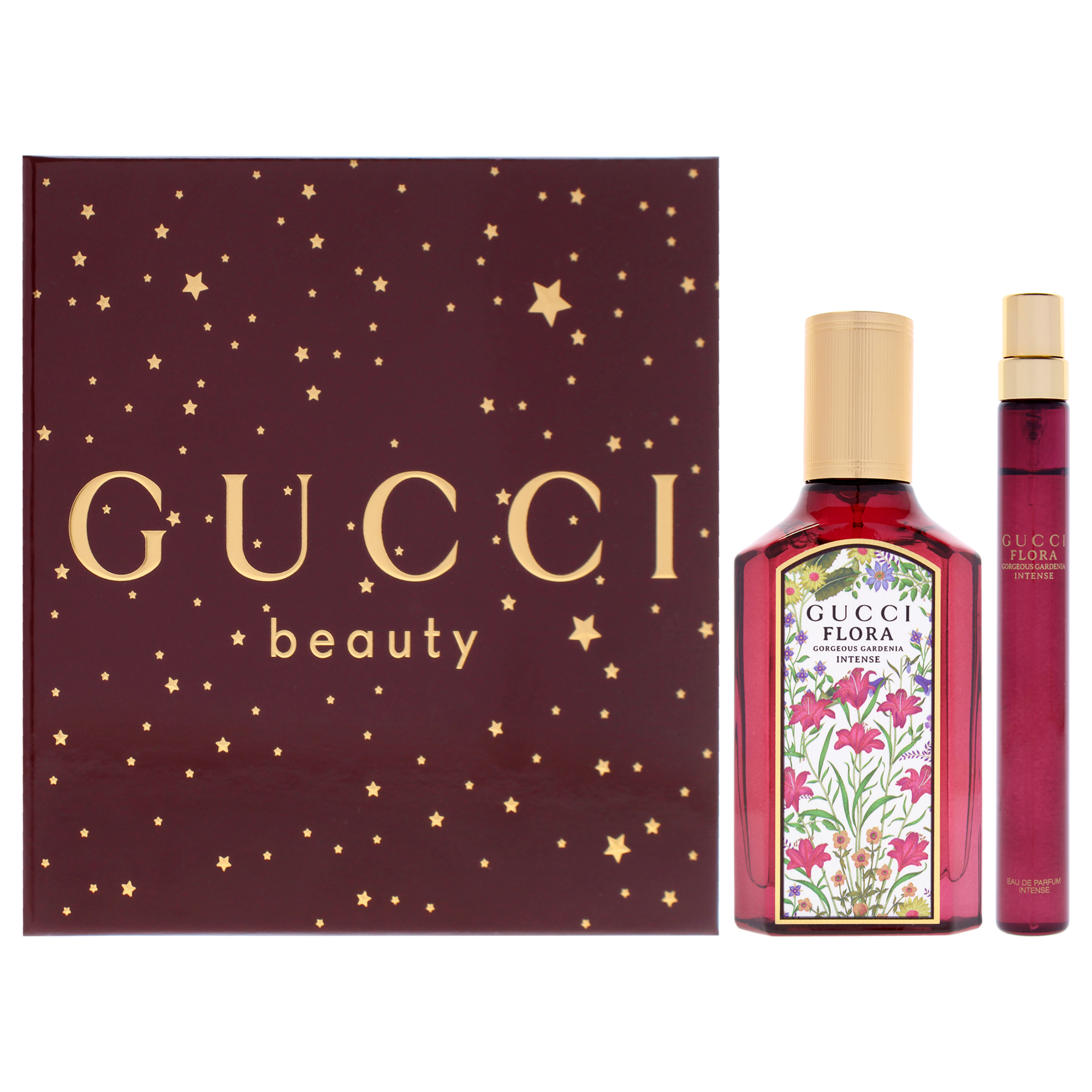 Set de regalo gucci flora gorgeous gardenia intense para mujer, incluye dos perfumes edp en presentación de 50ml y 10ml.