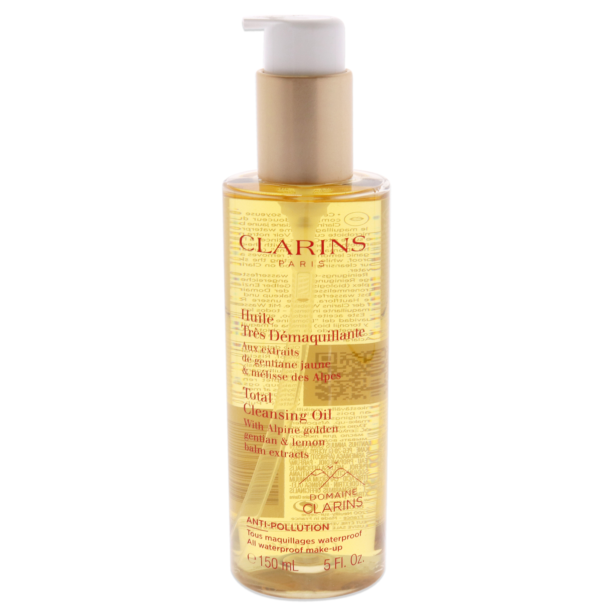 Aceite limpiador total de clarins, un limpiador facial ligero y refrescante para unisex, con 147ml de contenido que elimina maquillaje resistente y protege la piel.